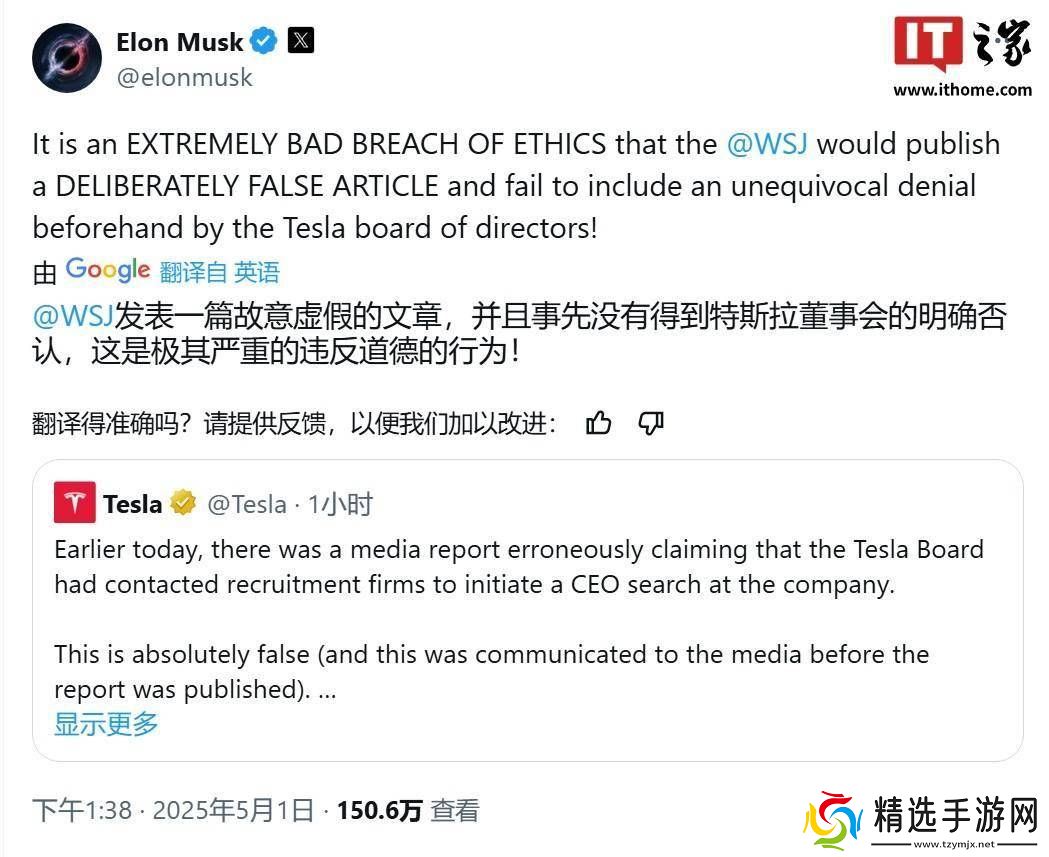 与此同时,马斯克本人也在社交平台上对《华尔街日报》的报道表达了强烈不满。他连续发文怒斥该报道“有损新闻业声誉”,并指责《华尔街日报》发布了一篇蓄意造假的文章,且未纳入特斯拉董事会此前的明确否认声明。马斯克认为这种行为极其严重地违反了职业道德。