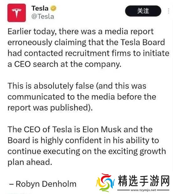 特斯拉董事长罗宾·丹霍姆(Robyn Denholm)在5月1日凌晨通过特斯拉官方推特发表声明,明确指出有关董事会已开始联系招聘公司寻找新任CEO的报道是错误的。她强调,这一说法在报道发布之前就已经被媒体告知是不准确的。