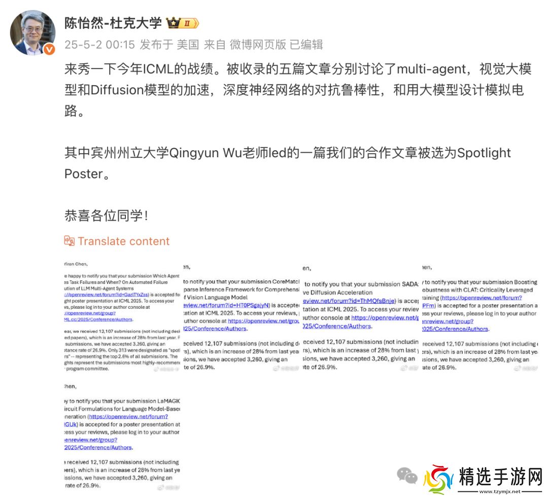 杜克大学陈怡然教授晒出了 ICML 战绩,团队共有 5 篇论文被顶会录用,还有一篇与宾州州立大学合作论文被选为 Spotlight Poster。