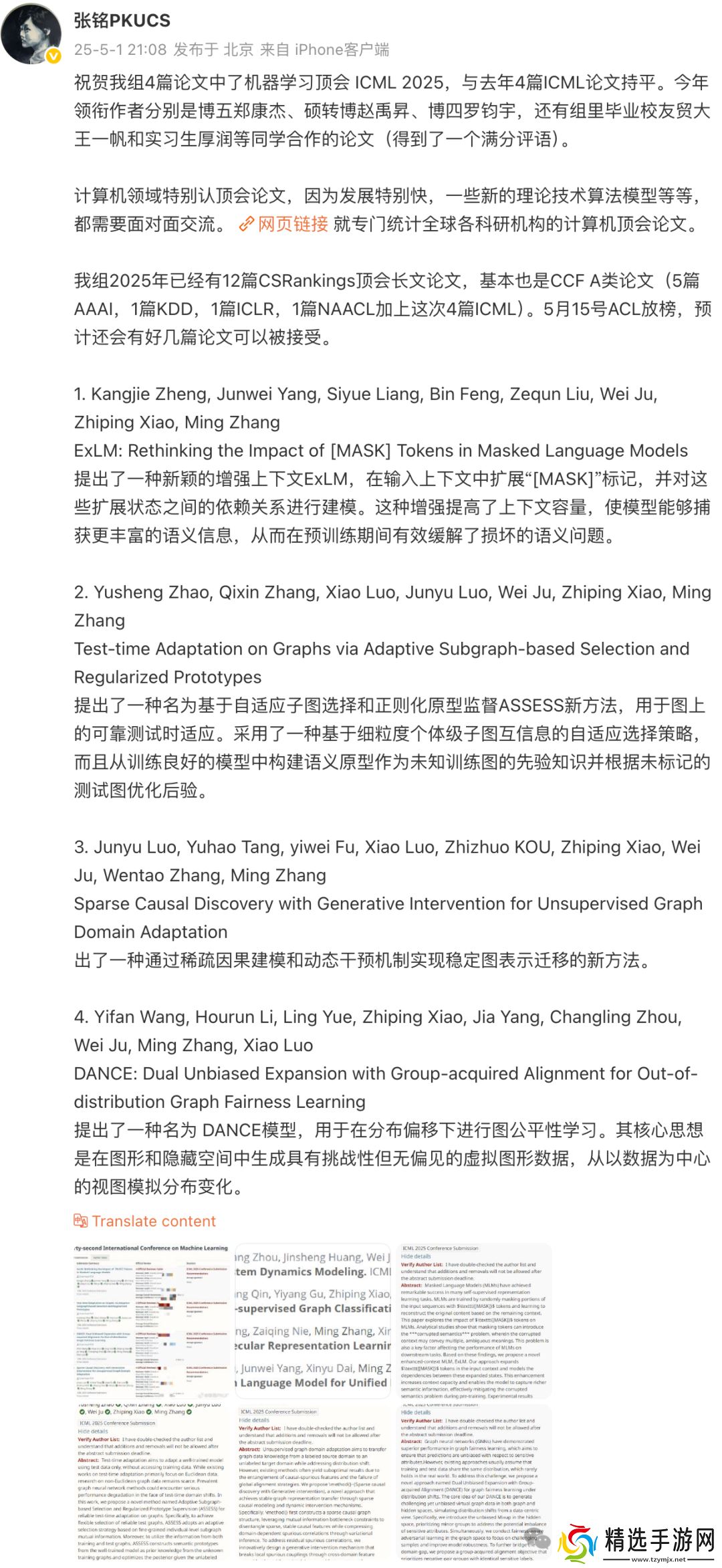 北大计算机系张铭教授团队,共有 4 篇论文中奖,与去年录用论文数持平。