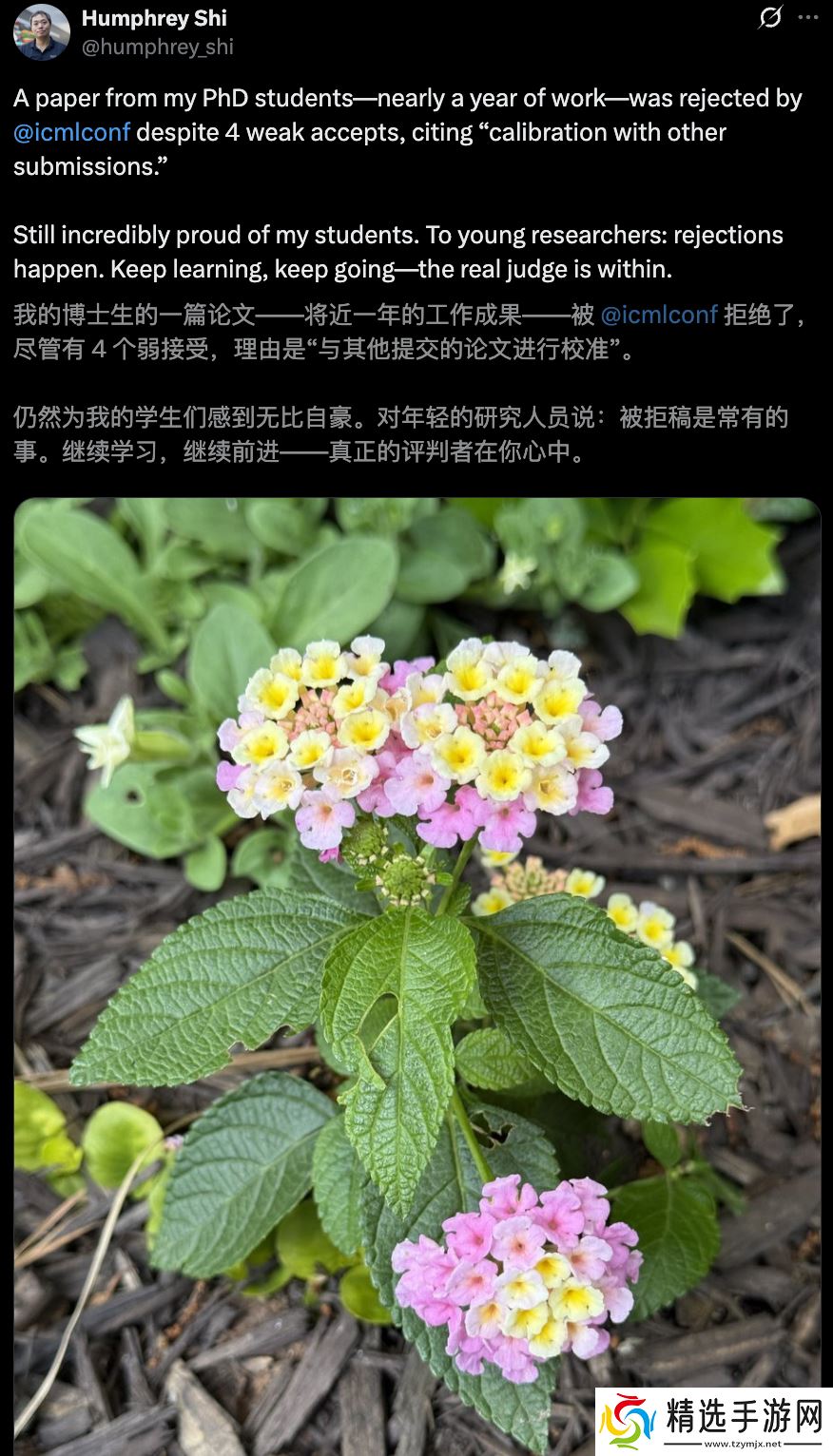 他勉励道,「被拒稿是常有的事。继续学习,继续前进 —— 真正的评判者在你心中」。