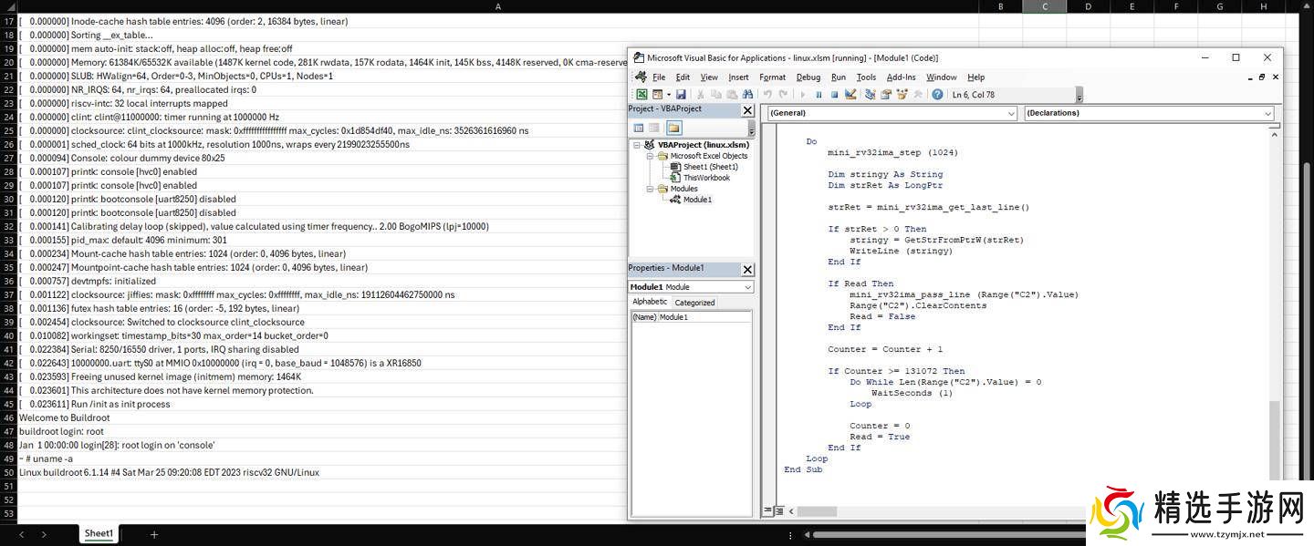 NSG650在项目中透露,这一成果的实现很大程度上得益于GitHub用户cnlohr所构建的RISC-V模拟器。通过这一模拟器,NSG650利用Microsoft VBA宏技术在DLL中调用了模拟器,成功地将Linux系统的输出写入到了Excel的单元格中。
