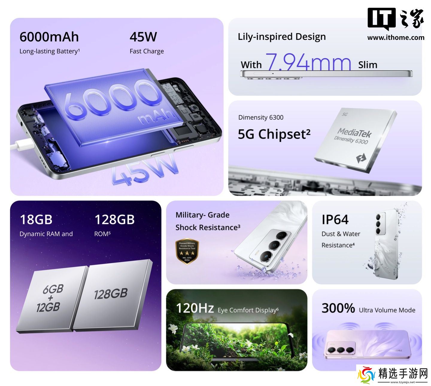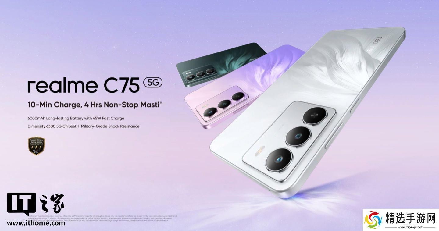本站 5 月 3 日消息,realme现已在海外推出一款C75 5G手机,该机定位中端,采用联发科天玑6300芯片,定价为12999 印度卢比(本站注:现汇率约合 1119 元人民币)起。
