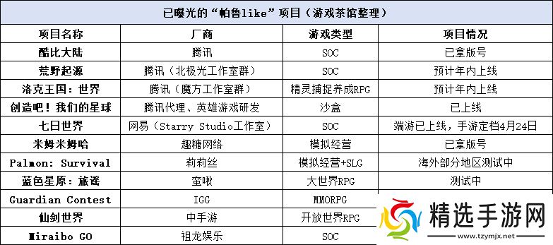 众多游戏大厂敏锐地捕捉到了这一趋势,纷纷投身到“帕鲁like”游戏的研发中。腾讯四大工作室群几乎全员出动,网易、IGG、莉莉丝等国内头部游戏厂商也紧随其后,积极布局这一新兴市场。