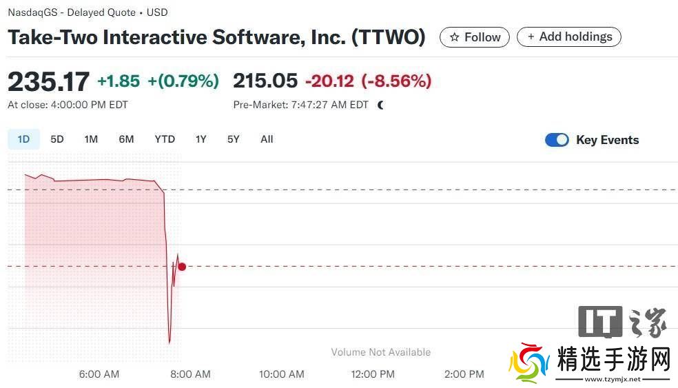 然而,这一消息发布后,R星的母公司Take-Two的盘前股价却出现了闪降,跌幅超过8%。这一反应或许反映了市场对于游戏延期以及未来销售预期的担忧。