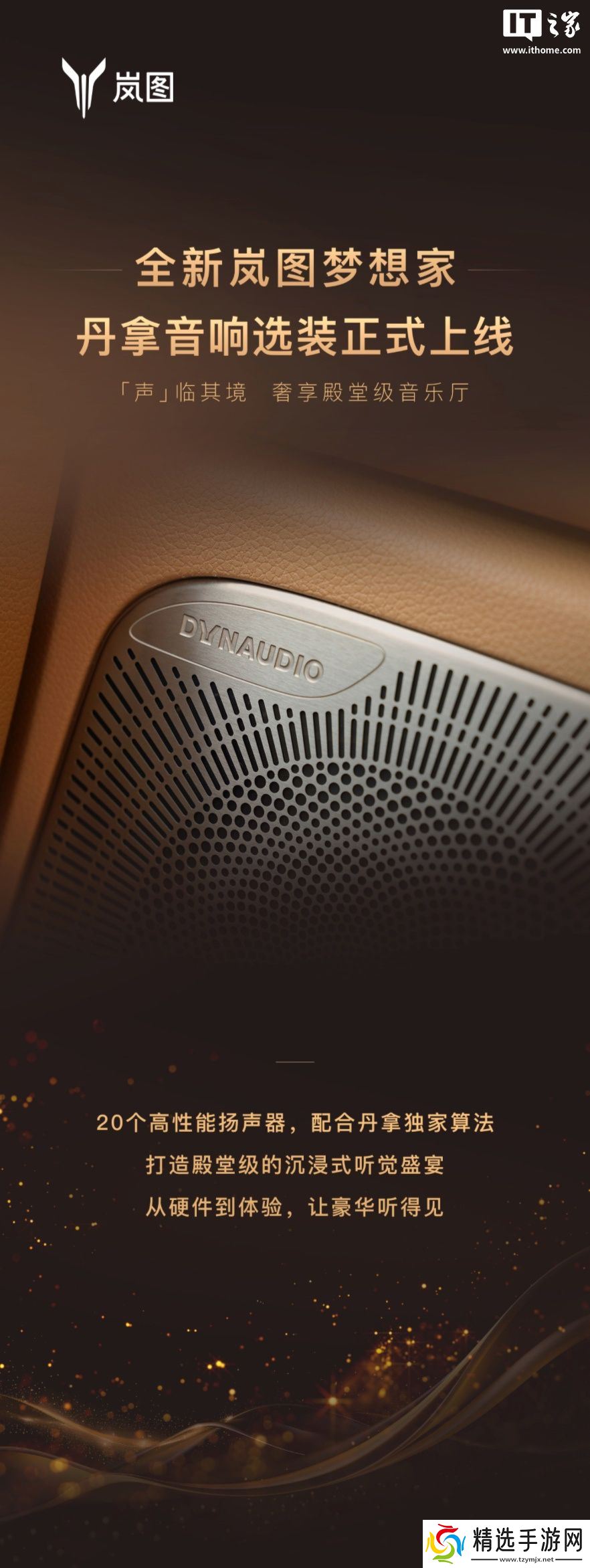 本站 5 月 3 日消息,岚图汽车宣布为旗下梦想家车型上线“丹拿音响选装包”服务,选装后车辆可以升级为 20 个扬声器,具备 3D 沉浸式环绕声。丹拿音响选装包定价为 12999 元,即日起购买岚图梦想家特定车型并选装可享限时售价 9999 元。