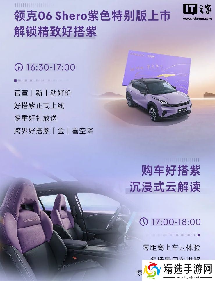 根据规划,领克 06 Shero 紫色特别版汽车将在 16:30-17:00 官宣价格。
