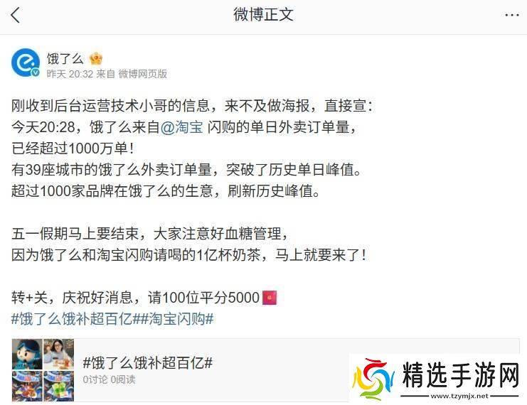 饿了么近日在晚间发布了一条引人注目的消息,宣布在某一日的晚上20点28分,通过淘宝闪购平台的外卖订单量成功突破了1000万大关。这一数据不仅彰显了饿了么在外卖市场的强劲实力,也标志着其与淘宝闪购的合作取得了显著成果。