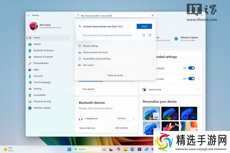 用户可以要求设备上的人工智能助手为自己调整 Windows 设置,或者寻求帮助解决遇到的问题,例如鼠标光标太小。根据微软提供的示例图像,Windows 将会用“建议由人工智能生成,可能不准确”的警告来标注这些功能。考虑到 Windows 设置可以执行诸如恢复出厂设置等操作,这一警告可能会让用户对该功能产生一定的疑虑。对于文件资源管理器,用户右键点击文件时将获得类似“点击即可执行”的新快捷方式,例如在打开文件之前编辑图像或生成文本摘要。