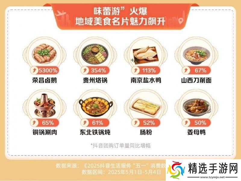 在餐饮消费方面,家庭用餐和地方特色菜成为消费者的首选。据统计,5月1日至4日,家庭用餐和地方特色菜的抖音团购订单量分别增长了77%和45%。荣昌卤鹅因网络红人“卤鹅哥”的推广而走红,其订单量同比增长超过53倍,成为假期期间的一大亮点。
