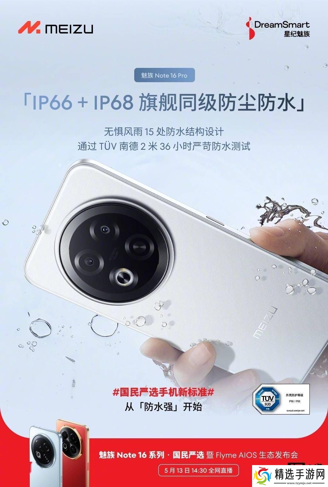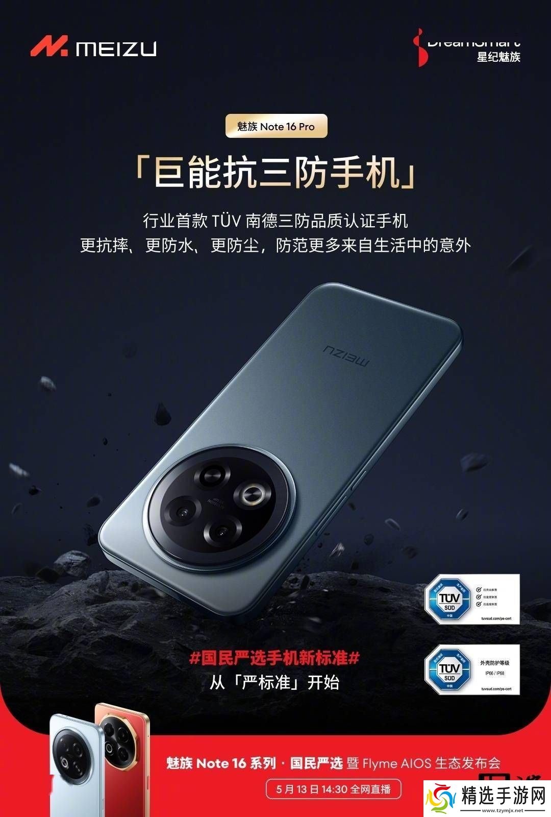 近期,星纪魅族官方再次为魅族 Note 16 系列手机的发布造势。据悉,魅族 Note 16 Pro 将成为业内首款荣获TÜV 南德「三防品质」认证的手机,这一消息引起了广泛关注。