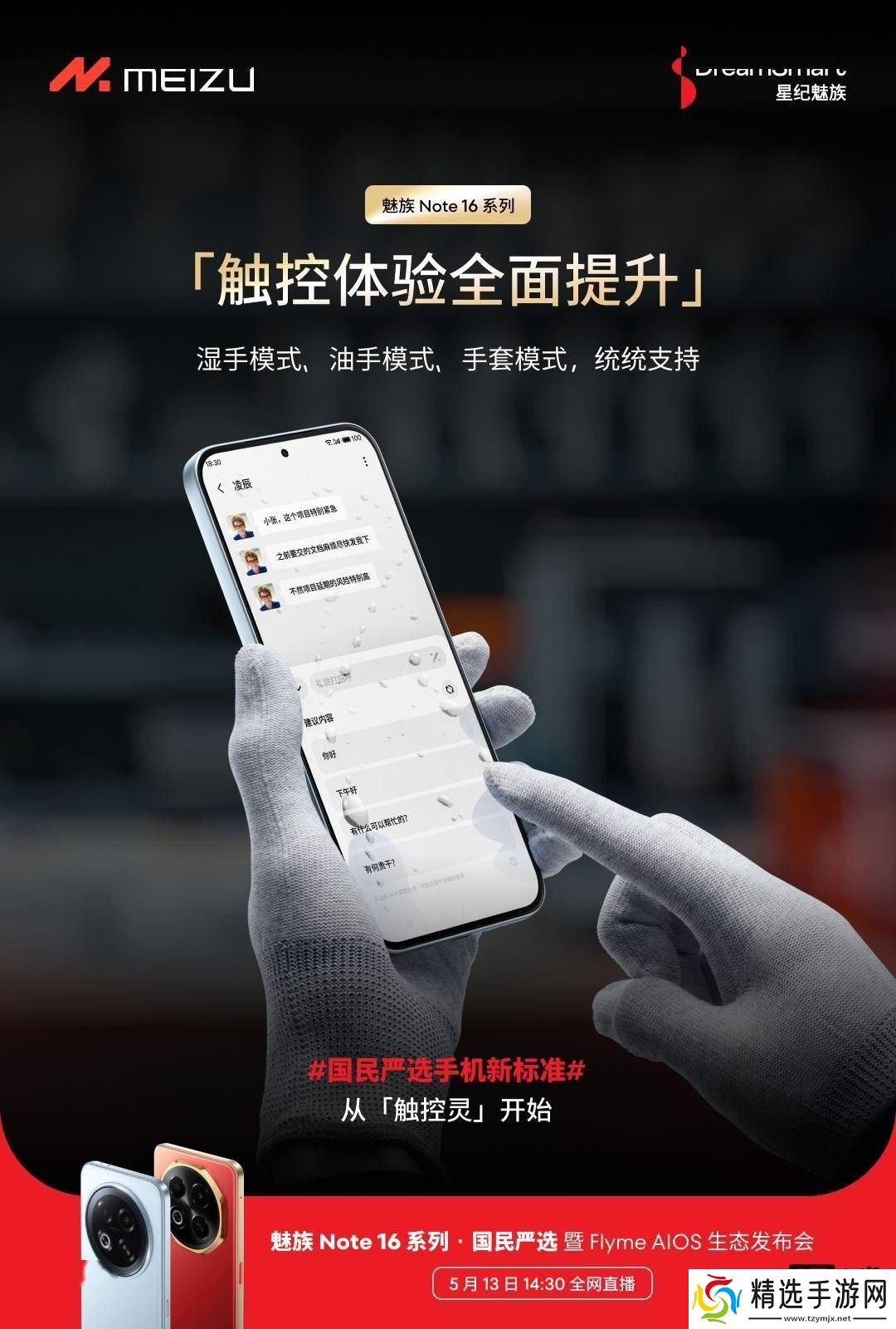 为了提升用户体验,魅族 Note 16 系列手机全系支持湿手、油手及手套模式下的操作,这一创新功能无疑将为用户带来更加便捷的触控体验。官方宣传称,这一系列手机的触控体验得到了全面提升。