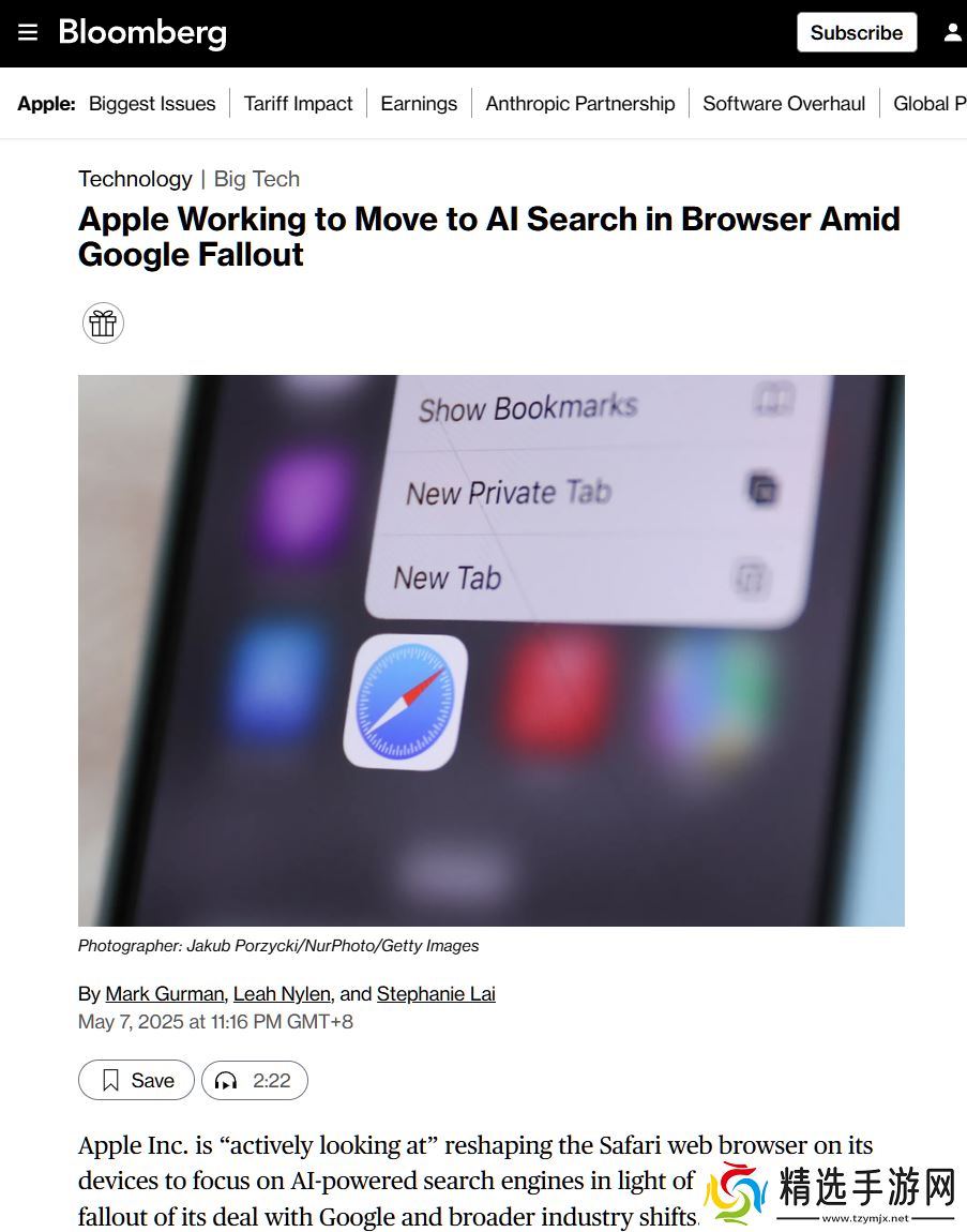 本站 5 月 7 日消息,据彭博社报道,苹果公司正积极考虑重塑其 Safari 浏览器,将重点转向由 AI 驱动的搜索引擎。