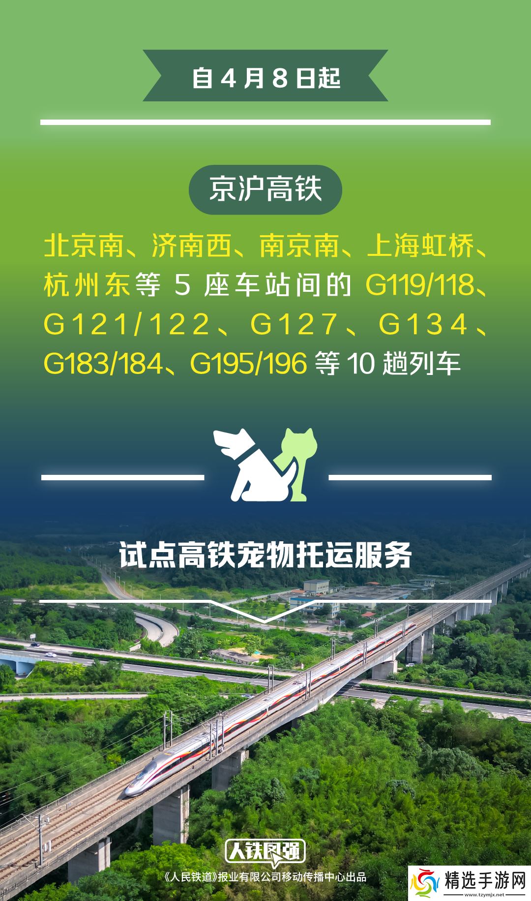 本站 4 月 8 日消息,本站从“中国铁路”微信公众号获悉,4 月 8 日起,铁路部门在京沪高铁部分车次试点“隔离运输、人宠分开、专人看护”的高铁宠物托运服务,铁路 12306 同步推出“宠物托运”功能,旅客提前 2 天及以上线上预约,预约成功后可同车托运 1 只家庭驯养且健康状况良好、单只体重不超过 15 公斤、肩高不超过 40 厘米的猫、犬类宠物。