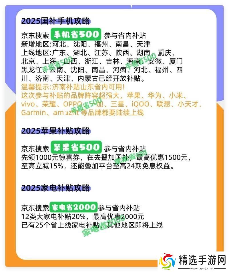 数码类产品则包括手机、平板和智能手表(手环),这些产品的补贴力度为最终售价的15%,但每件商品补贴上限为500元。消费者可以通过京东APP搜索“手机省500”或“数码省2000”来获取相关补贴。