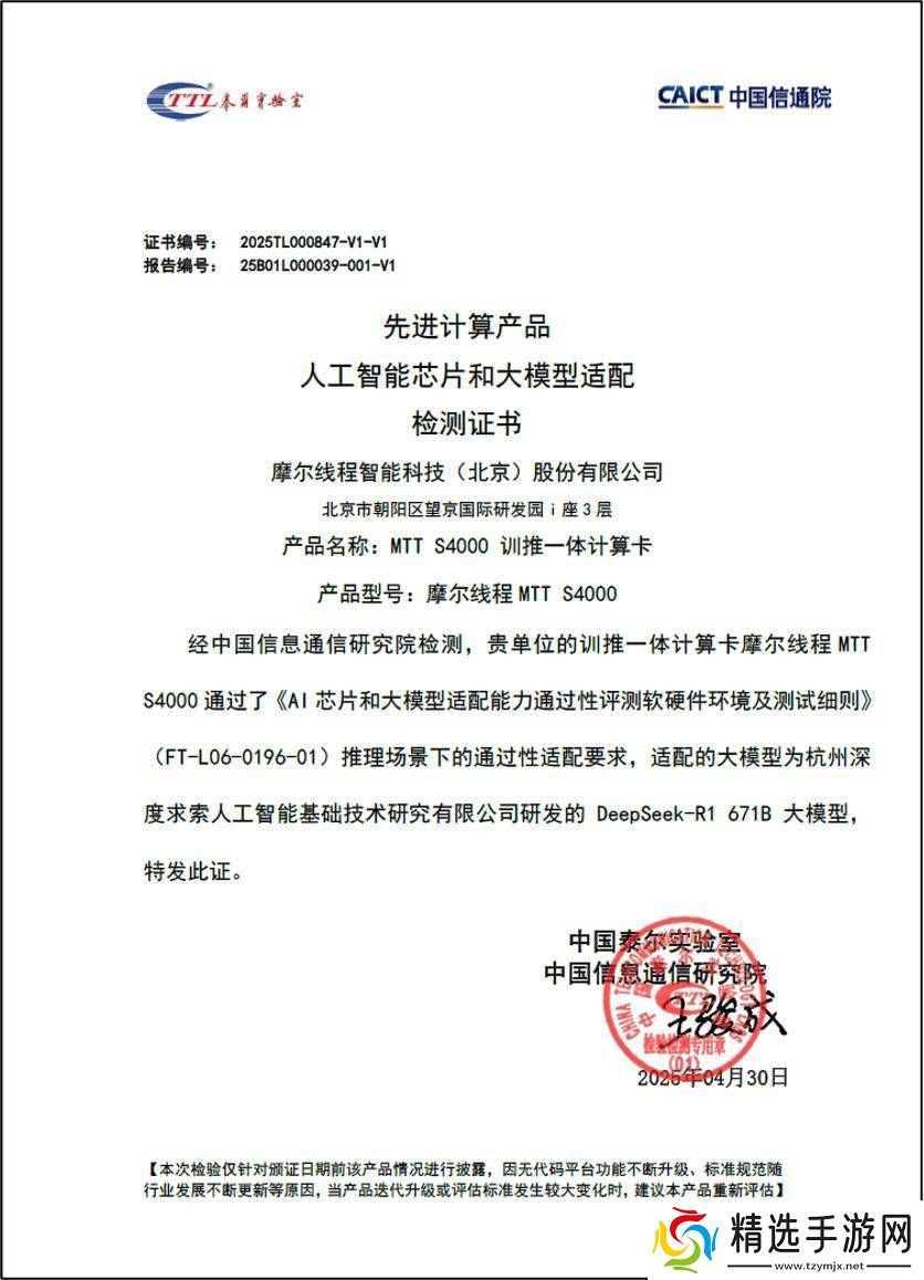 摩尔线程近日宣布了一项重要的技术进展,其自主研发的训推一体计算卡MTT S4000成功通过了中国信息通信研究院的AI芯片与模型适配验证项目。这一成果标志着MTT S4000与杭州深度求索公司研发的DeepSeek-R1 671B大模型在推理场景下的适配结果达到了“AI芯片和大模型通过性适配要求”。
