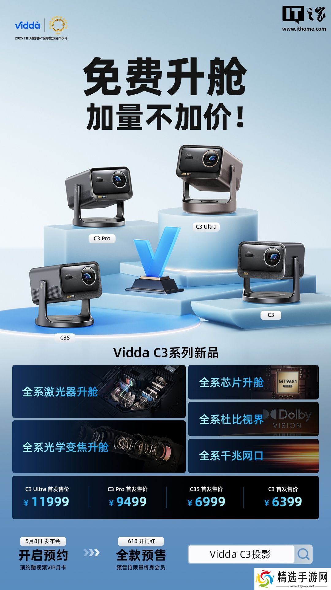 本站 5 月 8 日消息,海信今日发布了Vidda C3 系列投影仪,包含四个版本,定价 6399 元起。