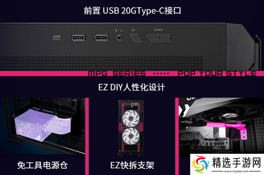 在美学设计方面,MPG VELOX 300R AIRFLOW PZ系列机箱提供了黑白两种配色选择,满足不同用户的审美需求。白色款采用高质感涂层,完美适配纯白主题装机;黑色款则沉稳大气,彰显低调奢华。机箱采用模块化结构设计,可拆卸式顶盖与前面板简化了布线难度,打造整洁的内部空间。同时,机箱还配备了Type-C接口和音频扩展口,满足用户高速数据传输和多媒体需求。