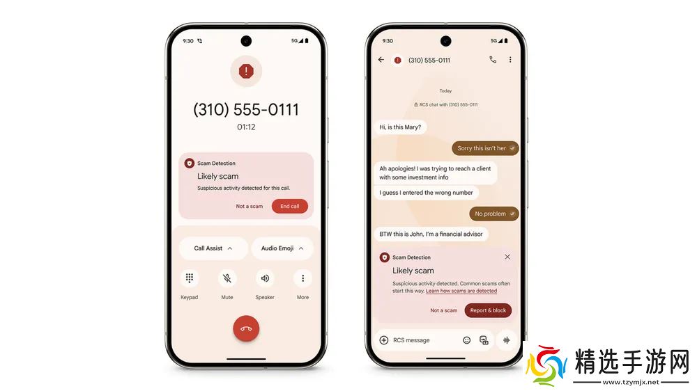 此外,谷歌在 Google Messages 和 Phone by Google 中引入了设备端 AI 诈骗检测功能,专门应对通过电话和短信发起的复杂诈骗,保护用户免受伪装成正常通信的欺骗行为。