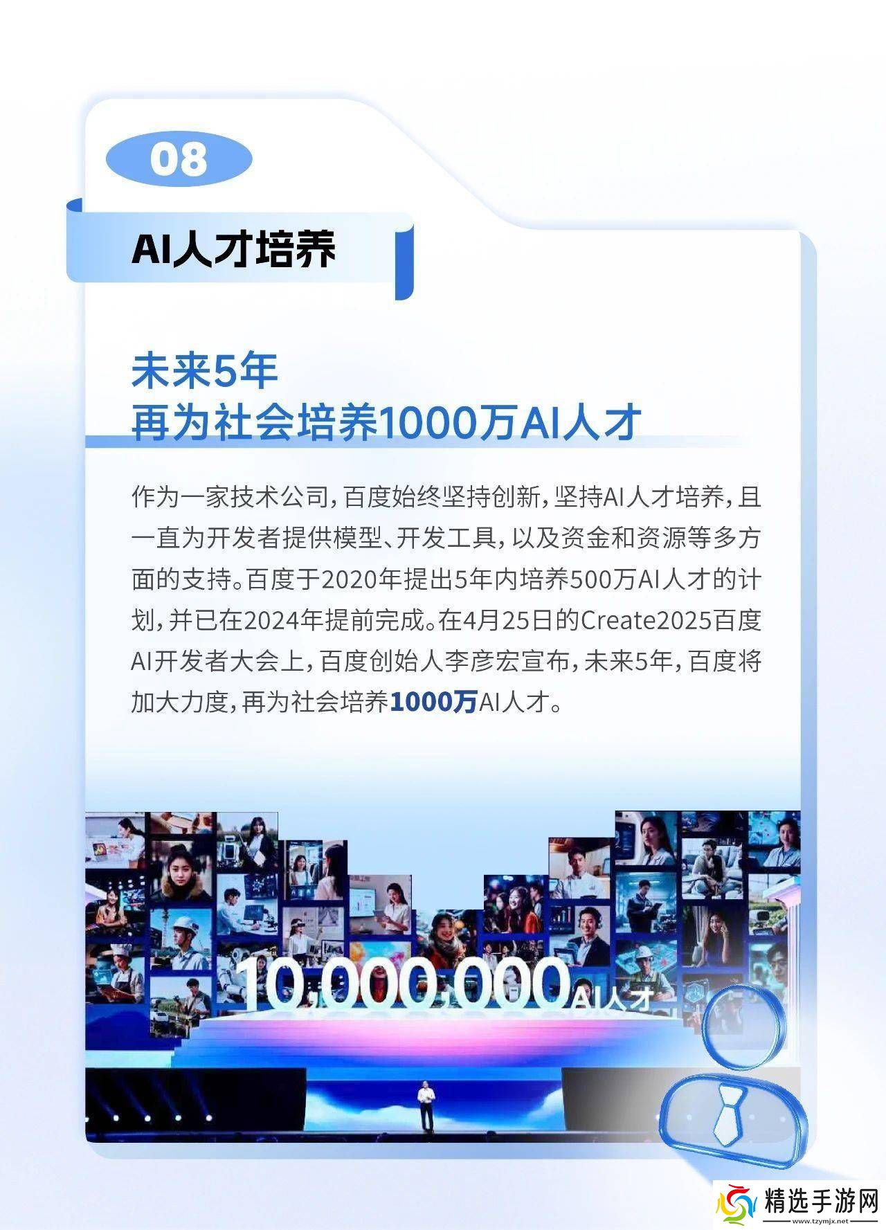在AI人才培养方面,百度也取得了显著成效。截至2024年底,公司已成功培养了592万名AI人才,为行业输送了大量新鲜血液。百度创始人李彦宏在不久前的2025百度AI开发者大会上更是宣布,未来五年,公司将进一步加大投入,目标再培养1000万名AI人才,为智能时代的持续发展奠定坚实基础。