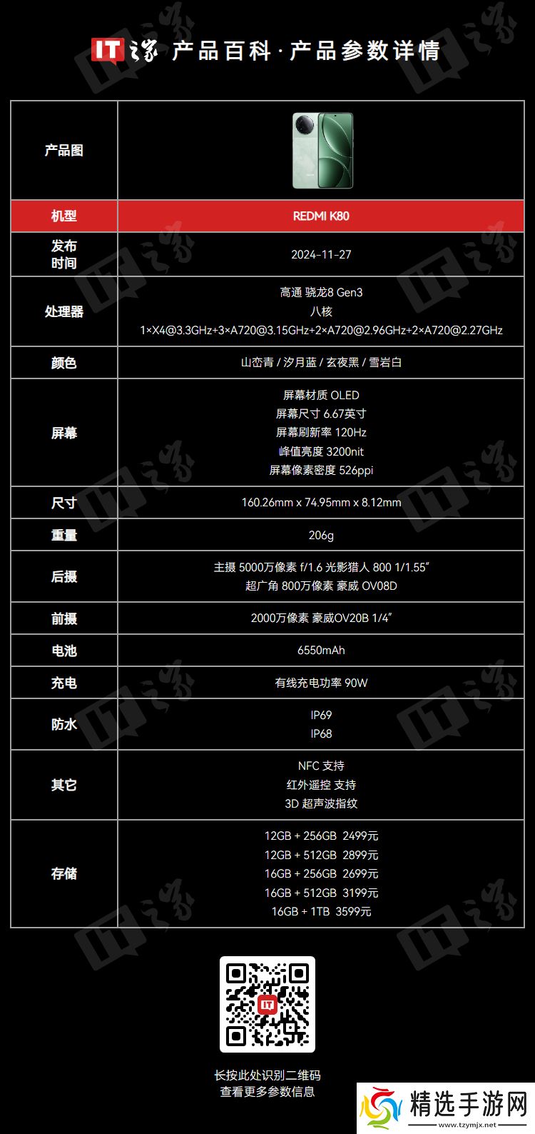 REDMI K80 手机开售于 2024 年 11 月 27 日,12GB+256GB 官方定价 2499 元。