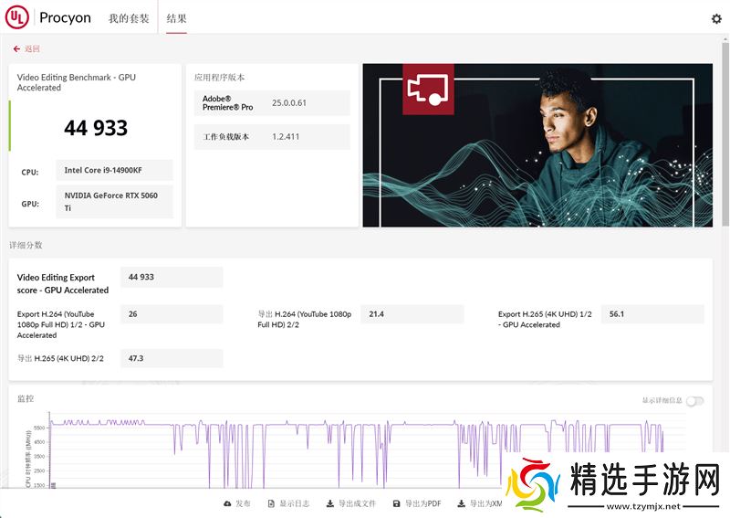除了游戏性能,RTX 5060 Ti曜夜16GB显卡在视频编解码和AI任务上也表现出色。在Procyon视频编辑测试中,显卡的得分高达44933,显示出强大的硬件加速能力。同时,在Blender和V-Ray等3D渲染软件中,显卡也展现出了不俗的性能。