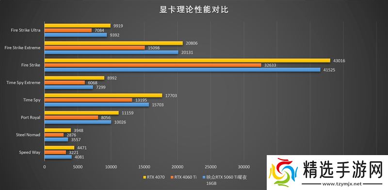 在理论性能测试中,RTX 5060 Ti曜夜16GB显卡的表现位于RTX 4060 Ti和RTX 4070之间,相比上一代RTX 4060 Ti有约25%的性能提升,但仍未达到RTX 4070的水平。其最大的亮点在于支持最新的DLSS 4技术,这一技术通过AI生成帧,极大提高了游戏画面的流畅度。