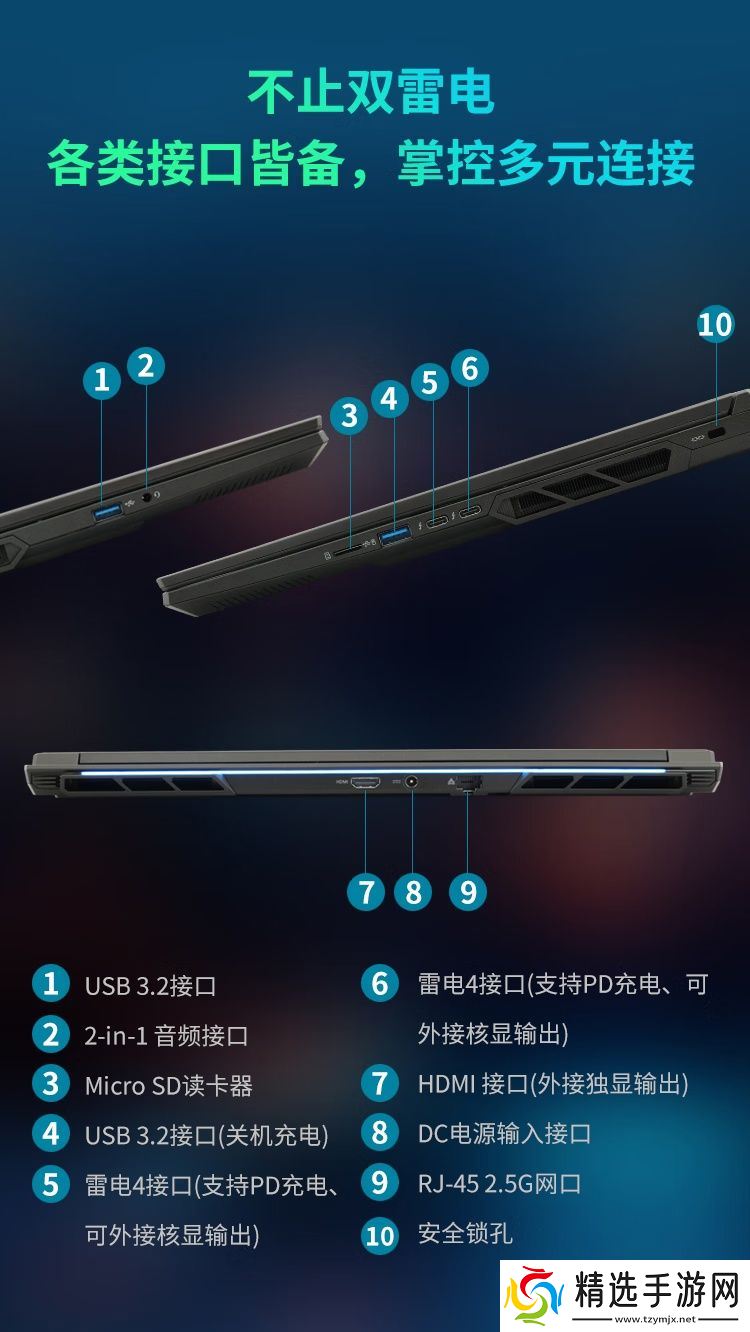 这款游戏本基于蓝天新一代旗舰级轻薄独显本模具,采用双面金属机身,内置 80Wh 电池(续航 9 小时),厚 19.9mm,重约 2.3kg。它采用了 DDR5 5600 双槽内存 + 三个 M.2 插槽(其一支持 PCIe 5.0);采用双风扇 + 超大均热板散热,性能释放未公布。