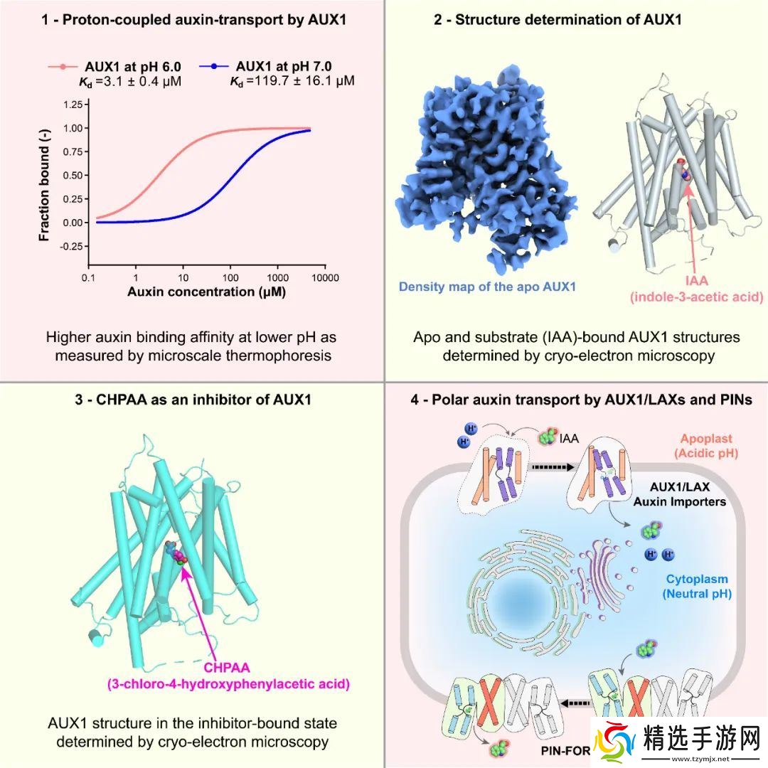 本站 5 月 15 日消息,中国科学技术大学孙林峰、刘欣团队与谭树堂团队合作,在植物激素运输领域取得重要研究进展,首次报道了植物生长素内向转运蛋白 AUX1 的三维结构,系统阐释了该蛋白依赖于质子浓度梯度向胞内运输生长素的分子机制。相关成果于北京时间 5 月 15 日发表在《细胞》(Cell)上。