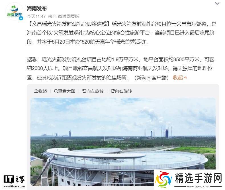 瑶光火箭发射观礼台,作为海南首个专注于“火箭发射观礼”的综合性旅游平台,坐落于文昌市东郊镇。据最新消息,该项目已进入收尾阶段,并计划在5月20日举办一场别开生面的“520航天嘉年华瑶光首秀活动”。届时,游客将有机会亲身体验航天科普主题展,欣赏梦幻光影秀,观看精彩演艺表演,并享受各种美食活动。