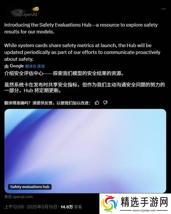 OpenAI近期宣布了一项旨在提升透明度的重大举措:将更频繁地公开其内部人工智能模型的安全评估详情。这一决定伴随着“安全评估中心”网页的正式上线,该网页于本周三正式对公众开放。