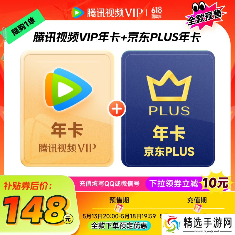 京东腾讯视频 VIP + 京东 PLUS 年卡日常 178 元 618 大促 148 元直达链接