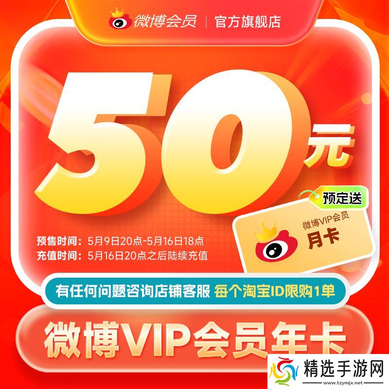 天猫新浪微博会员 年卡预定送月卡券后 50 元领 70 元券