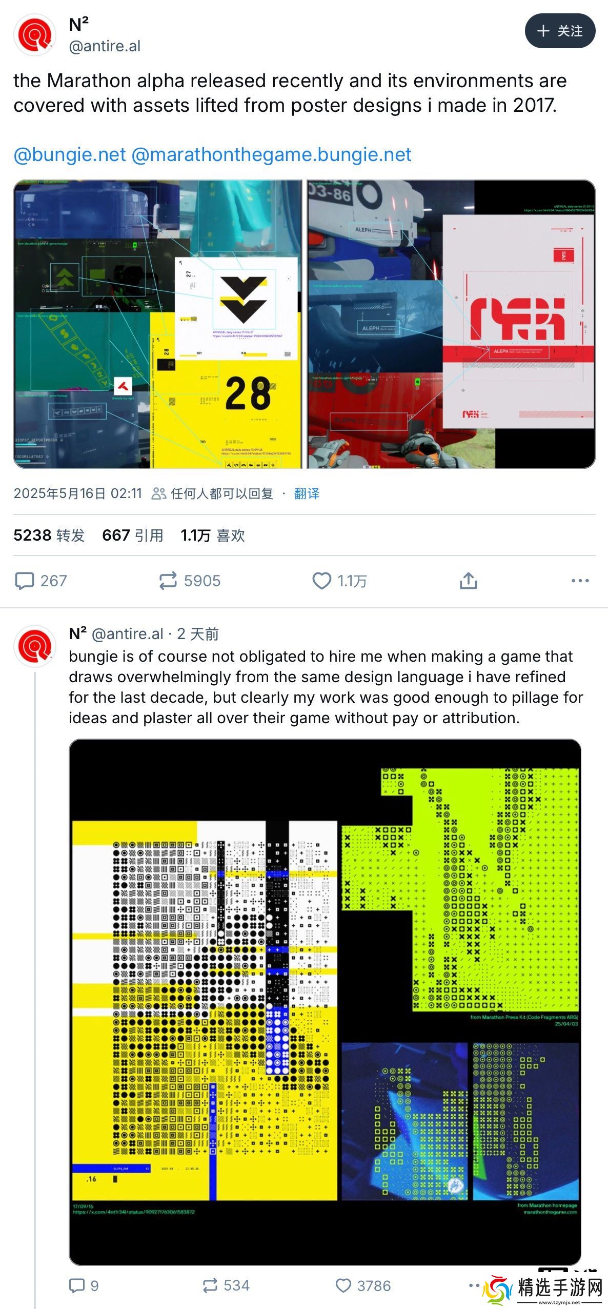 本站 5 月 18 日消息,Bungie工作室的FPS新作《失落星船:马拉松》当前正处于开发阶段,不过近日一位名为Antireal 的视觉艺术家在网上公开指责这款游戏部分素材贴图未经授权引用了自己作品中的设计元素。