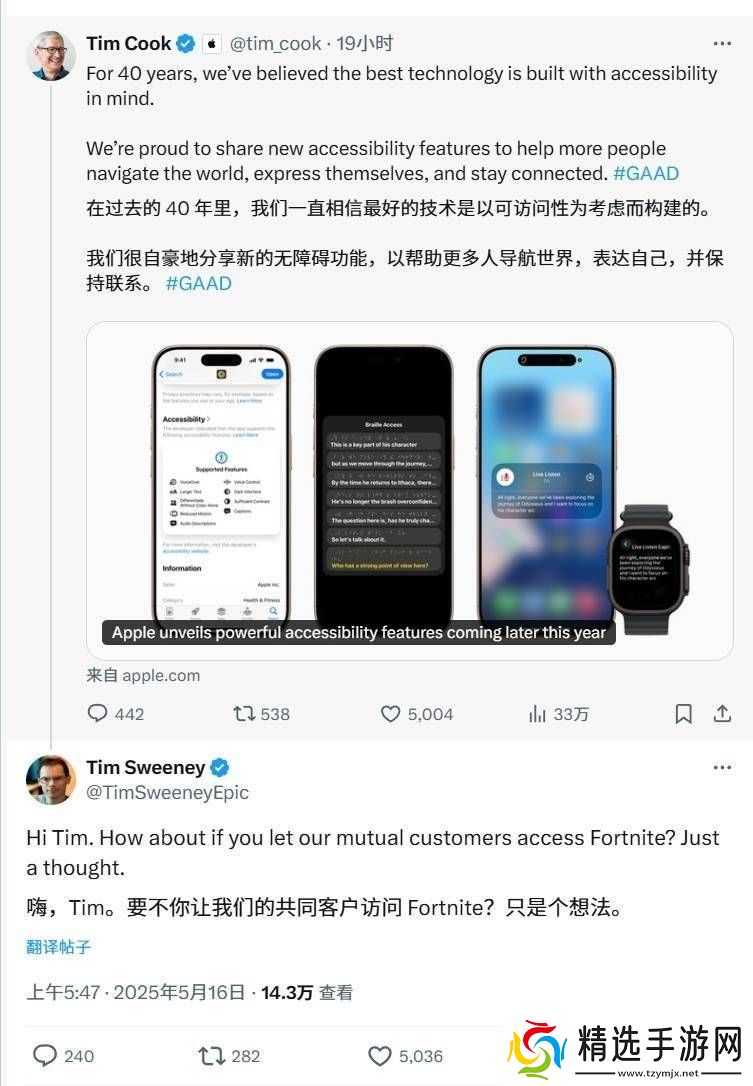 斯威尼还直接回应了苹果首席执行官库克的一条发文,他写道:“嗨,Tim,要不要考虑让我们共同的用户可以玩《堡垒之夜》?这只是一个建议。”这一举动无疑加剧了双方之间的紧张氛围。