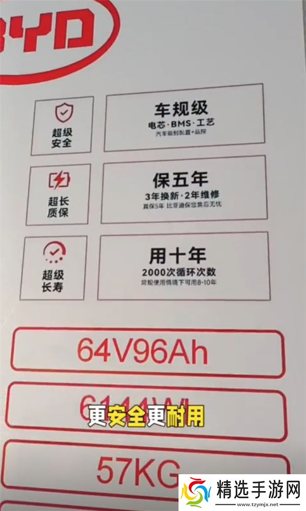 根据经销商爆料的视频,目前比亚迪两轮、三轮车专用磷酸铁锂电池已上市的包括 48V 30Ah、64V 24Ah、64V 48Ah、64V 72Ah、64V 96Ah、76V 96Ah 版本,适配不同的车型。