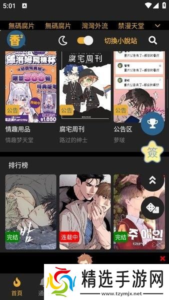 香香腐宅boylove完整版游戏介绍香香腐宅boylove为漫画爱好者们搭建了一个便捷又高效的途径,使他们能够随时随地尽情沉浸在丰富多彩的漫画世界中,享受漫画带来的无限乐趣。不仅如此,香香腐宅boylove还是一个活跃的交流平台,爱好者们可以在这里相互交流心得、热烈讨论剧情,还能分享自己喜爱的漫画作品,让阅读不再孤单。