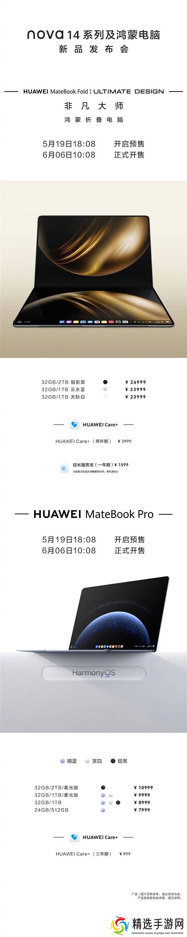 电脑方面,华为MateBook Fold非凡大师以其独特的折叠屏设计和强大的性能吸引了众多目光。32GB内存、1TB存储的云水蓝和天际白版本售价为23999元,而锻影黑配色的32GB/2TB版本则高达26999元。MateBook Pro系列则提供了多种配置选择,价格从7999元到10999元不等。