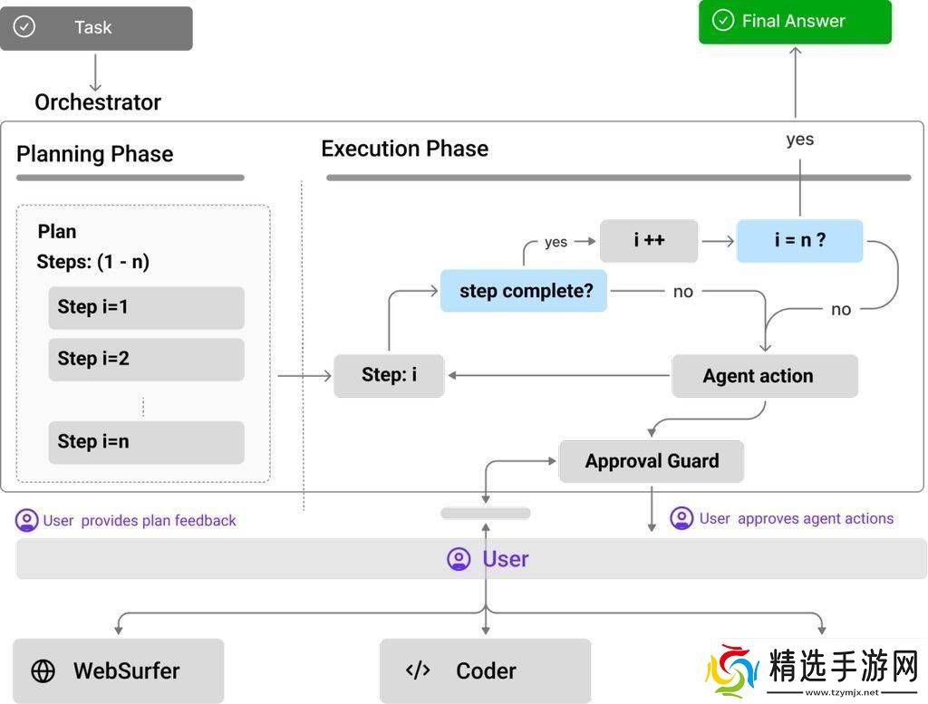 Magentic-UI的技术基础源于2024年发布的Magentic-One多智能体系统,并由AutoGen框架驱动。它具备四大核心功能:协同规划、协同任务、行为防护和计划学习。在协同规划中,用户可以通过计划编辑器对AI制定的步骤进行调整;在任务执行过程中,用户可以随时暂停系统并提供反馈,甚至直接接管浏览器操作。行为防护机制则要求AI在执行可能不可逆的操作前获得用户批准,以确保任务的安全性。而计划学习功能则让AI能够从过往任务中学习并保存计划,从而在未来的任务执行中更加高效。
