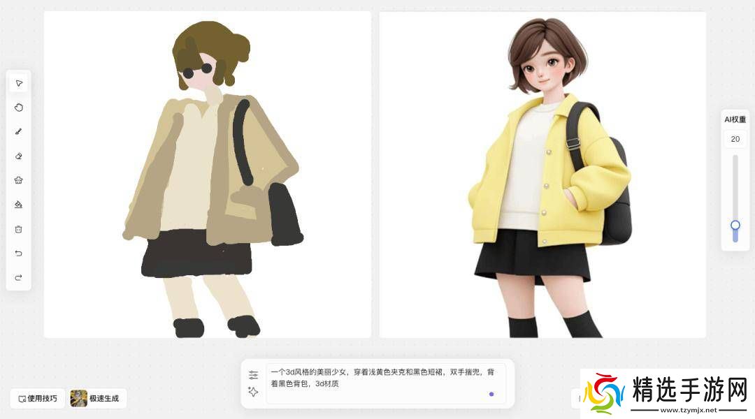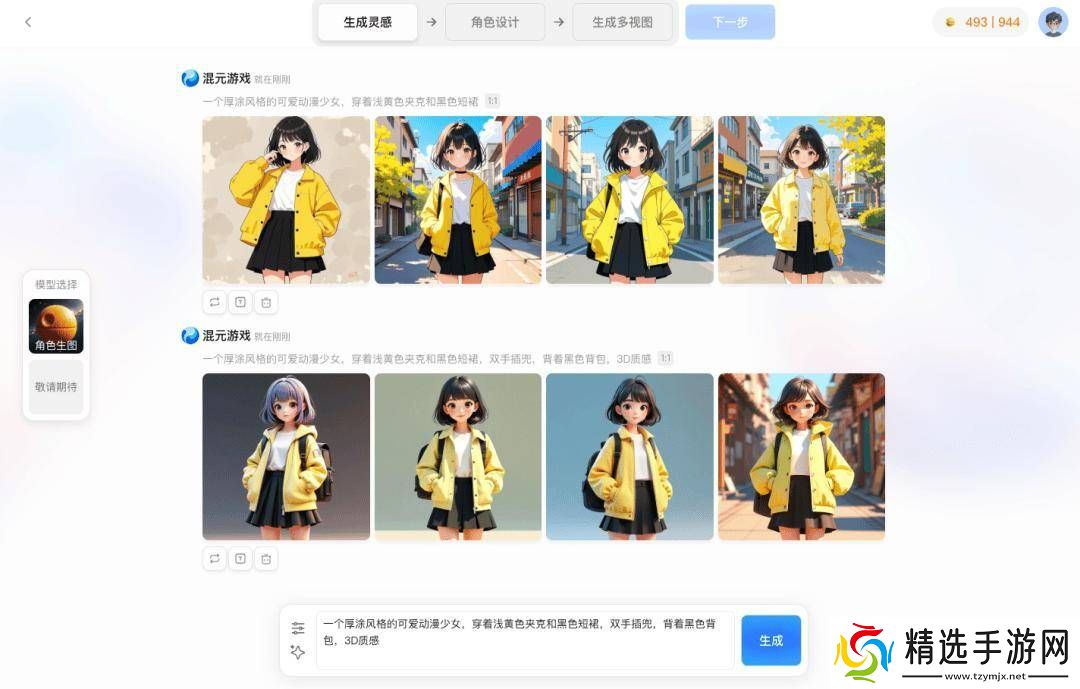 其中,AI美术管线功能尤为引人注目。它集成了多个AI工具,设计师无需在不同工具间跳转,即可在同一个页面上完成从灵感获取到角色概念草图绘制,再到标准角色多视图生成的全过程。例如,设计师只需输入如“一个厚涂风格的可爱动漫少女”这样的描述,AI即可即时生成相关角色灵感图集,并在同一页面内完成手绘草图渲染、标准三视图生成及360°动态演示视频输出。