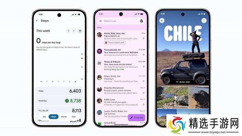 此外,Gmail 等应用也迎来重新设计,常用操作图标一目了然,不再隐藏在菜单深处。通知栏的互动体验更加有趣,滑动删除通知时会有“弹开”效果,剩余通知则会“挤回”原位。
