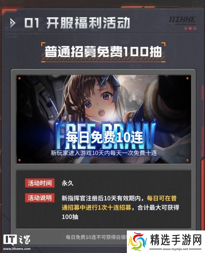 新指挥官注册后首 10 天,每日可在普通招募中进行 1 次十连招募,合计最大可获得 100 连!