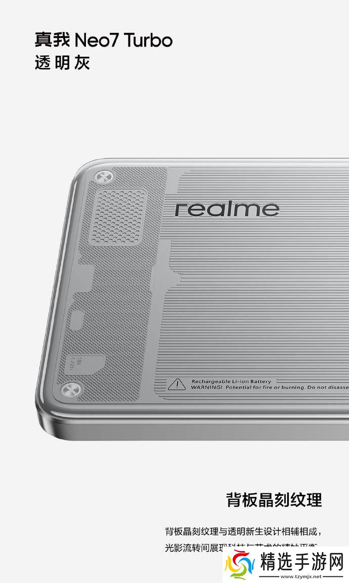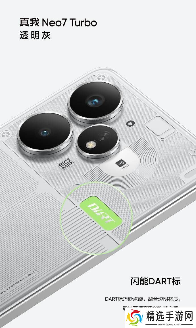 在细节构造上,真我Neo7 Turbo“透明黑”版的背部设计同样引人注目。它不仅配备了独特的“闪能DART标”和NFC灵透线圈,还通过背板晶刻纹理,将弧形线圈的细节展现得淋漓尽致。realme的负责人徐起透露,该机型在透明的后盖之下,几乎以1:1的比例展示了手机内部复杂的精密结构,这一设计采用了激光精雕多纹理拼接工艺,呈现出别具一格的视觉效果。