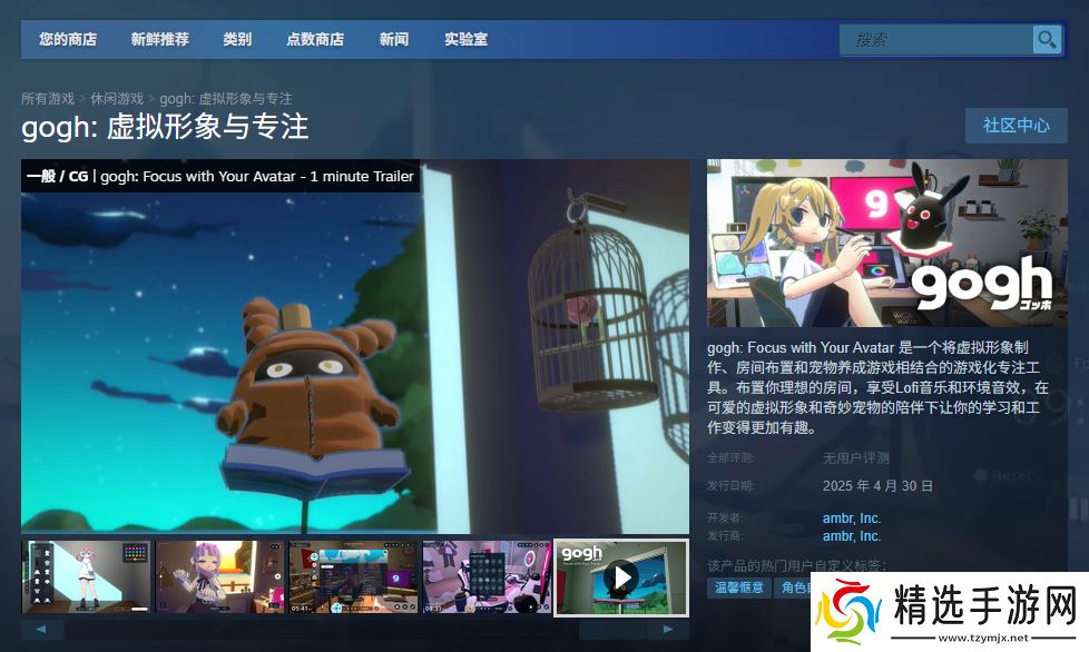 《gogh:虚拟形象与专注》是株式会社ambr开发的虚拟形象游戏。而这款游戏的官网地址就是一个官网页面,另外Steam平台的购买页面也算官网,进入到这个游戏的购买页面基本上就能知道所有这款游戏的信息。