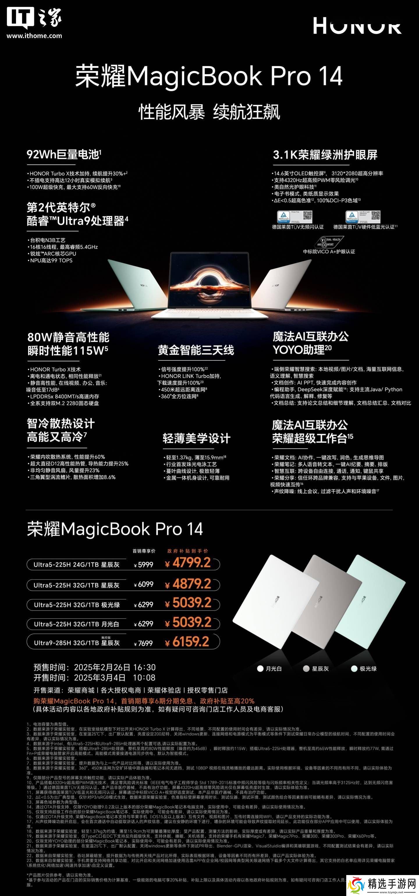 回顾今年3月,荣耀MagicBook Pro 14笔记本首次销售时便凭借其出色的配置和实惠的价格赢得了市场的青睐。当时,该笔记本搭载了Ultra 5-225H / Ultra9-285H处理器,同样内置92Wh电池,重量仅为1.37kg。首发价格根据不同配置有所不同,但在国家补贴政策下,起售价仅为4799.2元。