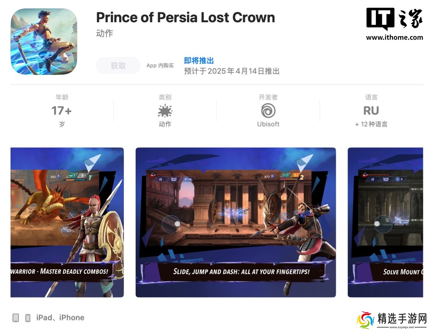 本站4 月 14 日消息,育碧旗下横版动作游戏《波斯王子:失落的王冠》今日登陆安卓和iOS平台,游戏免费下载,通过应用内购来解锁完整体验,本站附苹果 App Store 美区商店页面(点此访问)。