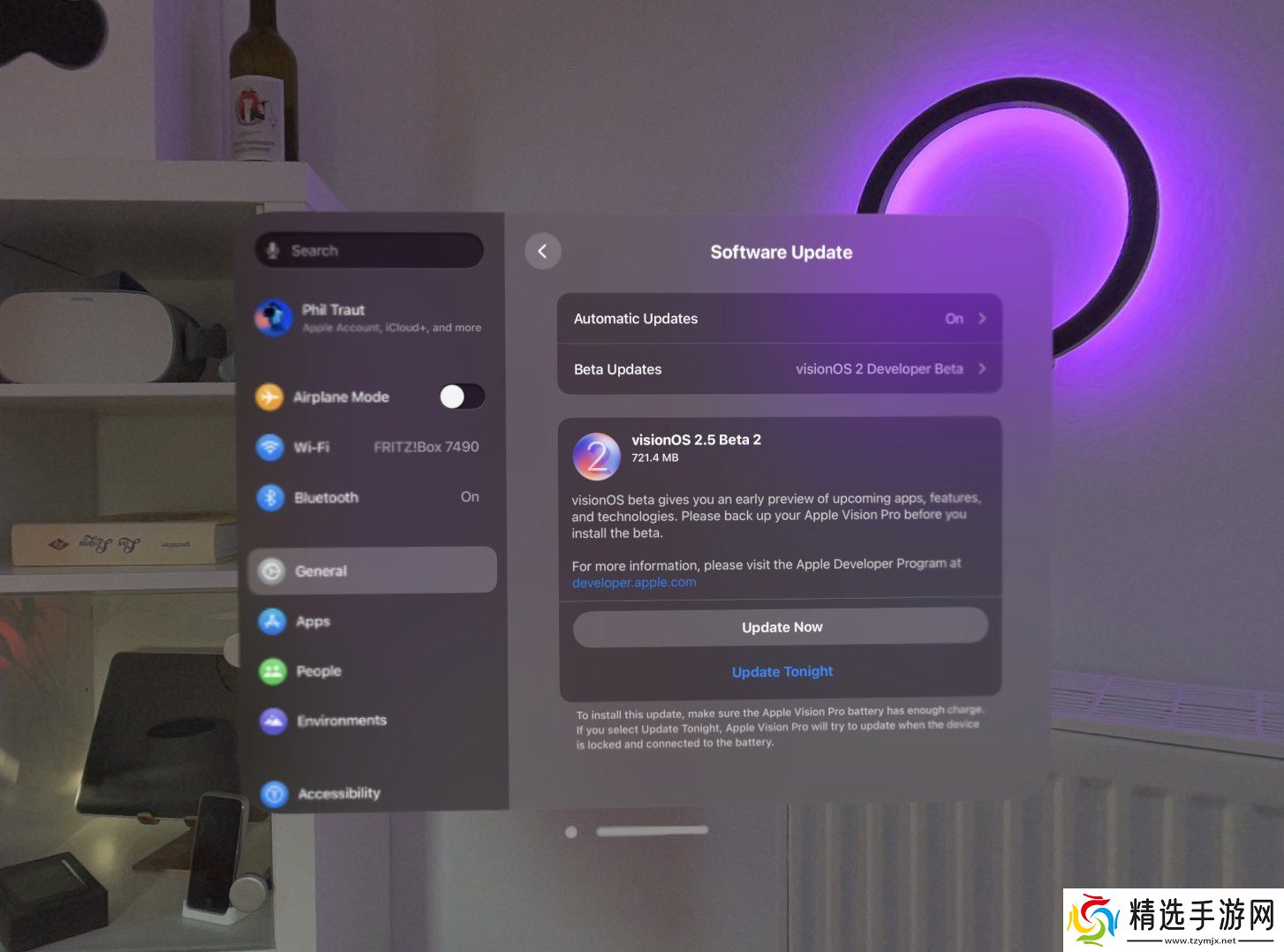 继 visionOS 2.4 引入 Genmoji 和 Spatial Gallery 工具后,2.5 Beta 2 可能进一步完善这些功能,或为后续功能铺垫。目前仅限开发者通过 Vision Pro 的设置应用(设置 > 通用 > 软件更新 > Beta 更新)下载安装,暂无公测版。
