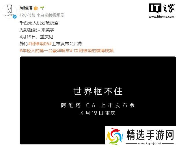 本站 4 月 14 日消息,阿维塔今日官宣,阿维塔 06 上市发布会将于 4 月 19 日在重庆举行。在此之前,这款新车已经开启预售,价格为 21.59 万元起。