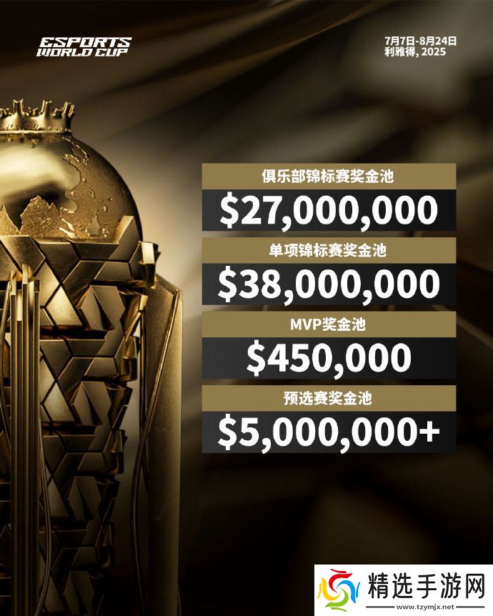 预选赛奖金池:超 500 万美元(现汇率约合 3648.5 万元人民币),用于“Road to EWC”系列赛,争夺 2025 电竞世界杯的入场券。