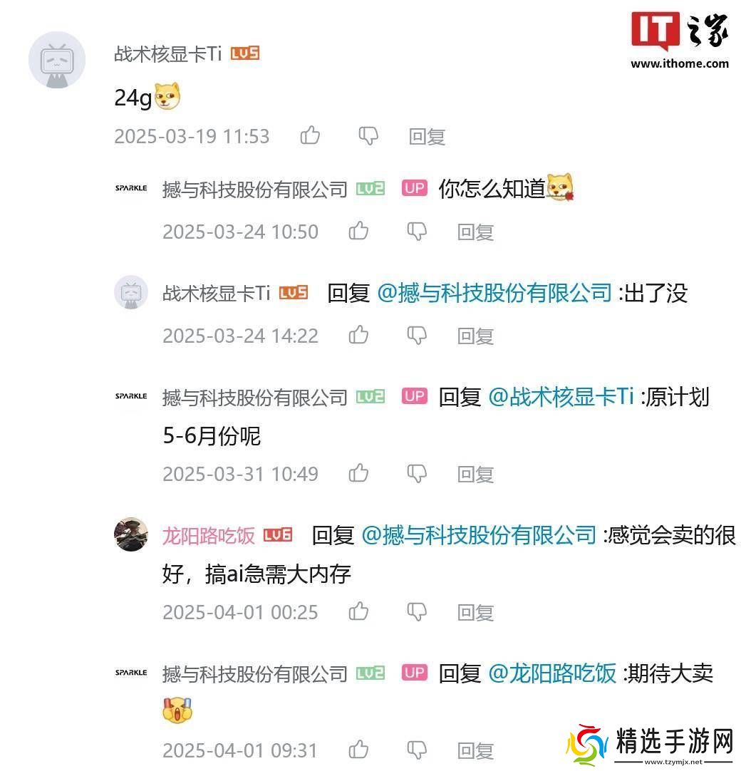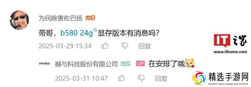 近期,有关英特尔锐炫独立显卡系列的最新动态引起了广泛关注。在B站平台上,一家名为撼与科技股份有限公司的OEM厂商,通过其官方账户在一条旧动态下透露了锐炫B580 24GB显卡的最新进展。该评论指出,这款备受期待的显卡“正在安排中”,并且原本计划在5至6月份推出。